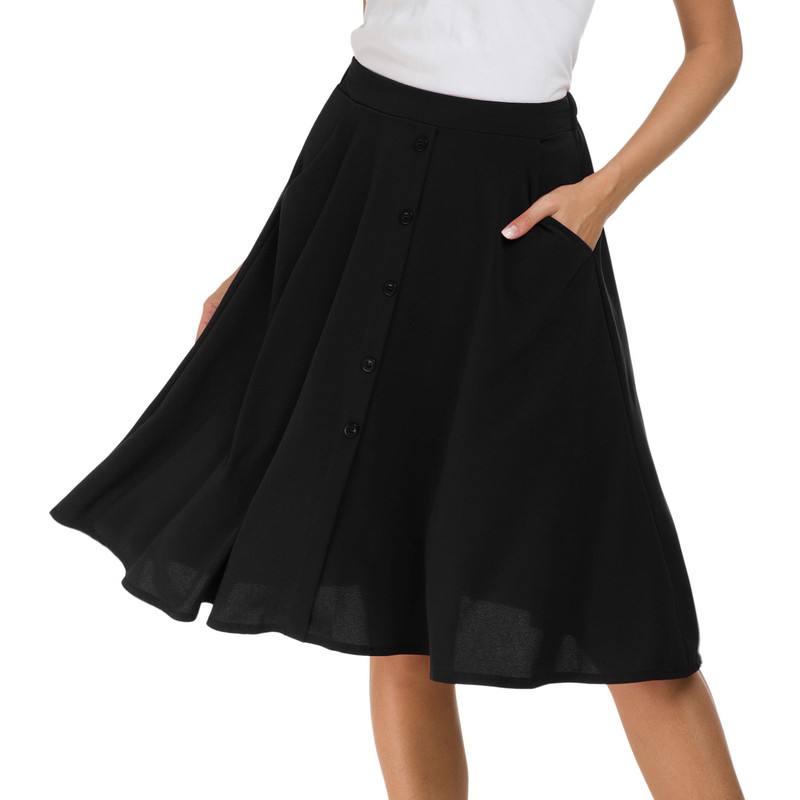 - Classical A-Line Solid Color Single Breasted Skirt knee length Shows elegant and intellectuality.