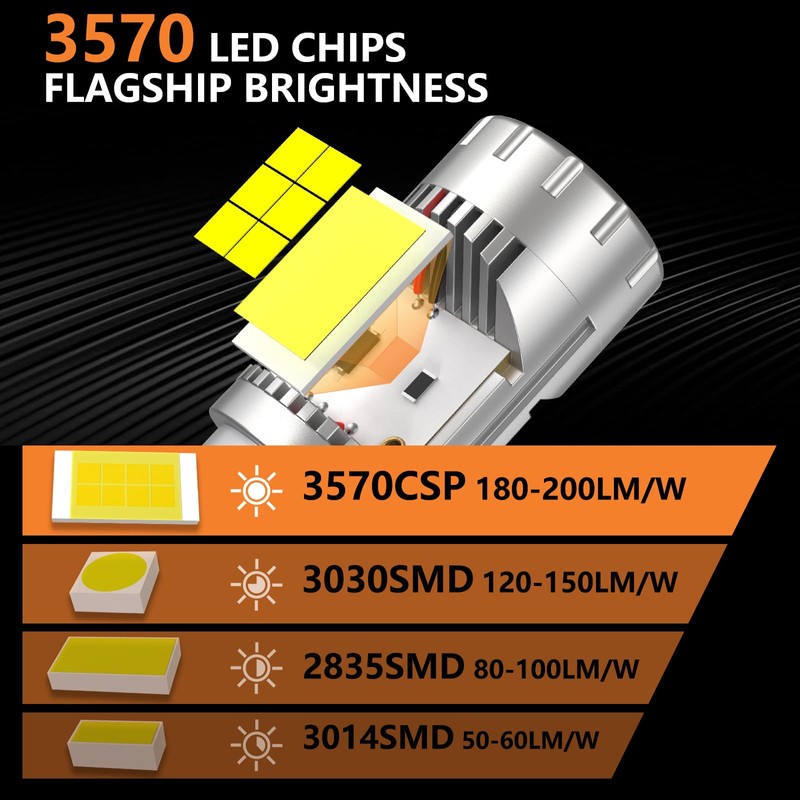 - 【800% Brighter for Reverse Light】Equipped with two pieces of 3570 CSP chips possessing a high power rating of 30W, the Afibraru 3157 LED bulb is capable of generating 3200LM of white light for reversing light. Thus, Afibraru 3157 LED bulb shines 800% brighter than the halogen bulb. It offers a super bright white beam that cuts through fog/rain/darkness, ensuring clear backup camera visibility of what's behind you for confident reversing in blacked-out parking lots or tight spots.