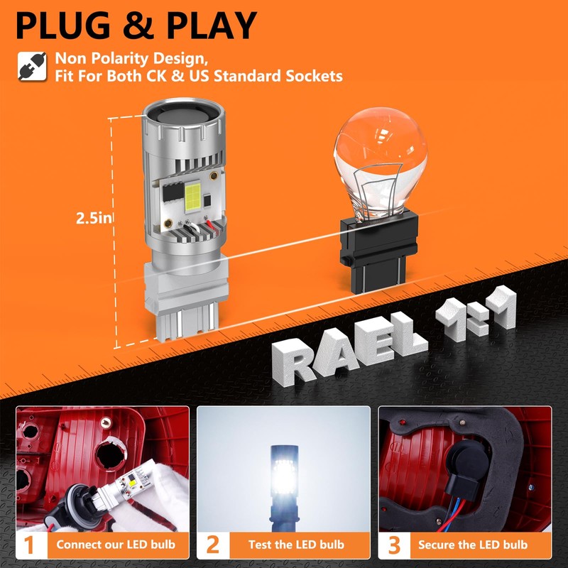 - 【Simple Plug & Play, Sockets Support】The Afibraru 3156 3157 LED bulb features a non-polar design and has true 1:1 size as the OEM halogen bulb. Direct fit for both CK & US Standard sockets, it's easy to install even by a newcomer. Compatible with a wide range of bulb models: 3056, 3156, 3157, 3157A, 3157NA, 3157NAK, 3157K, 3047, 3057, 3357, 3457, 4057, 4157, 3757, 4157NA, and T25. For few sensitive cars, load resistor may be needed, please reach us to get a free one.