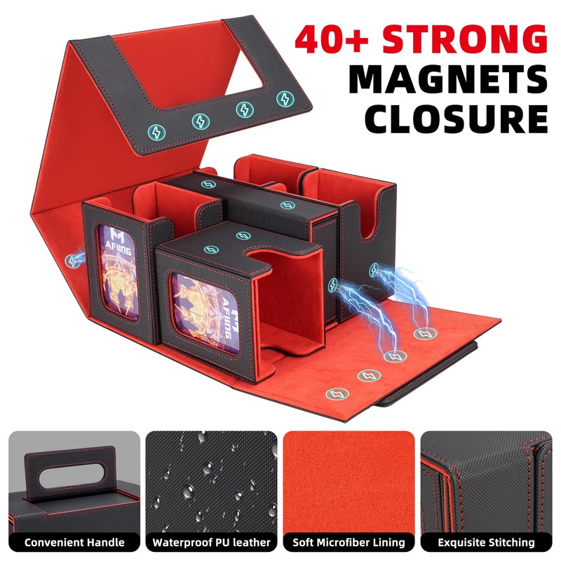 - Ideal for Card Collectors:AFIING Card deck box is perfect for the Commander format. It fits double-sleeved cards, works with Dragon Shield sleeves, PTCG, Yugioh , baseball and sports cards, and provides organized storage for tokens, dice, and more. Enjoy card games with your friends or family with this unique card box