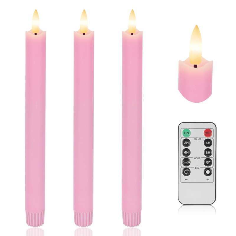 - 🎁WHAT YOU GET: 3 pack pink flameless taper candles (9.6 inch high x 0.78 inch diameter), one 10-key remote controls and one user manual. Each candle is wrapped by paper to prevent scratch and all candles come packaged in strong styrofoam and excellent box to protect them from being damaged in transit.