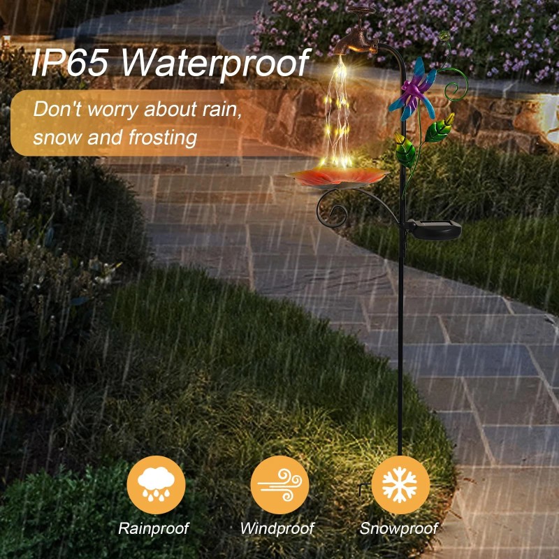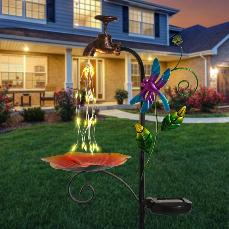 Each solar outdoor lights decorative boasts a charming faucet, designed with a bird feeder, adorned with a gracefully designed dragonfly, adding a touch of grace and elegance to your garden.