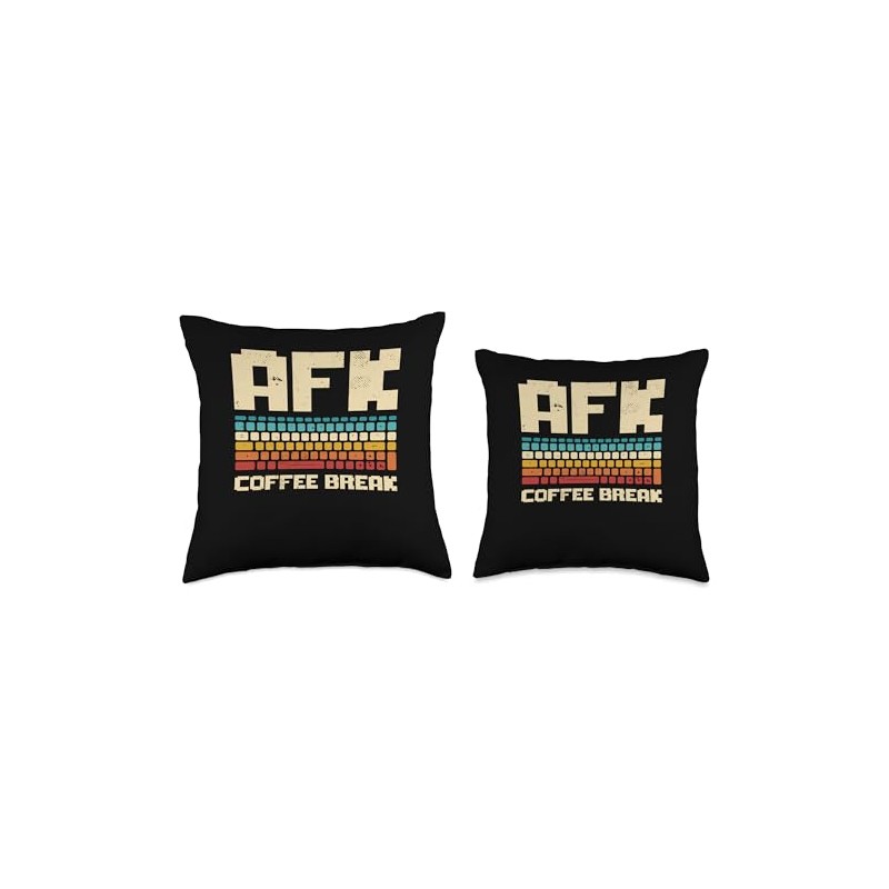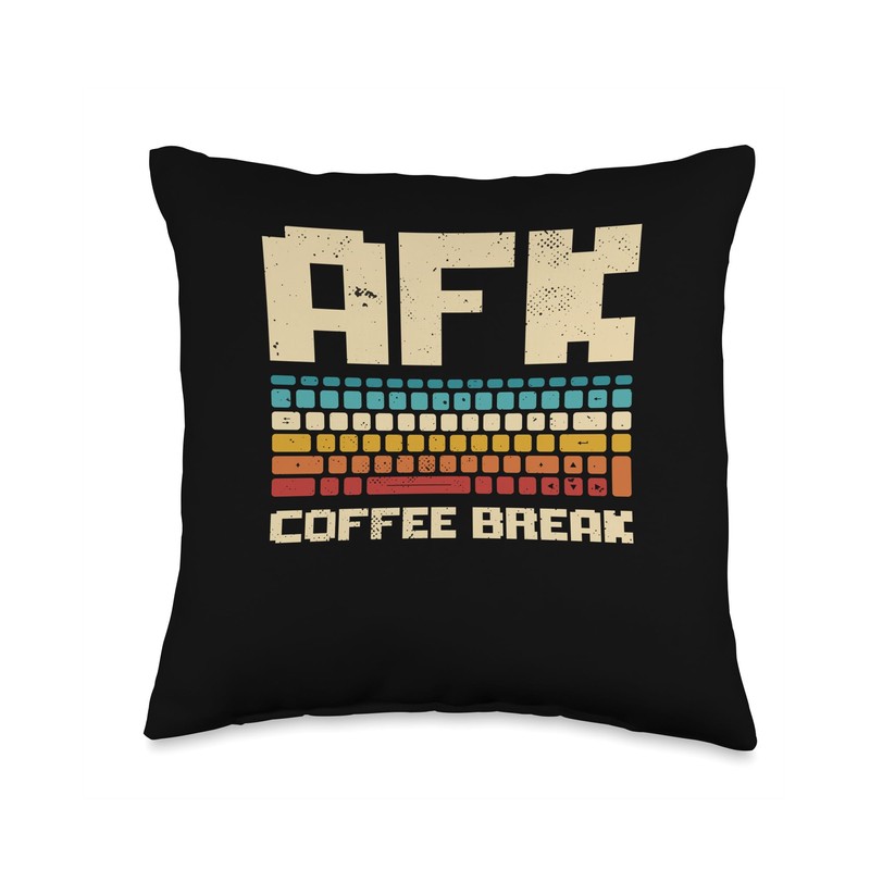 AFK Coffee Break Retro Keyboard Gaming Gamer Gift AFK Coffee Break | Retro Computer Keyboard | Gaming Gamer Throw Pillow, 16x16, Multicolor