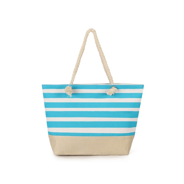 AFKOMST Canvas Shoulder Bag for Women Waterproof Beach Bag Striped Tote bag with Top Zip Closure