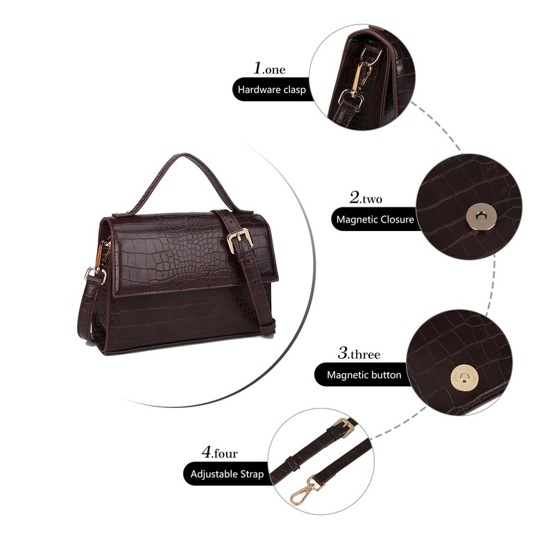 - Appearances: Dive into the world of luxury with this leather cross body bags for women, available in classic colors like black, brown and white. The stylish crocodile print ensures it will remain a staple in your wardrobe for years to come