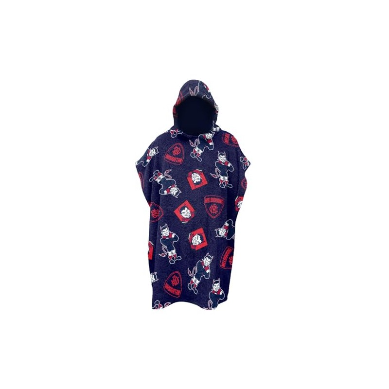 AFL Melbourne Demons Junior Youths Kids Hooded Beach Towel, Navy Blue Red, 80 x 80cm