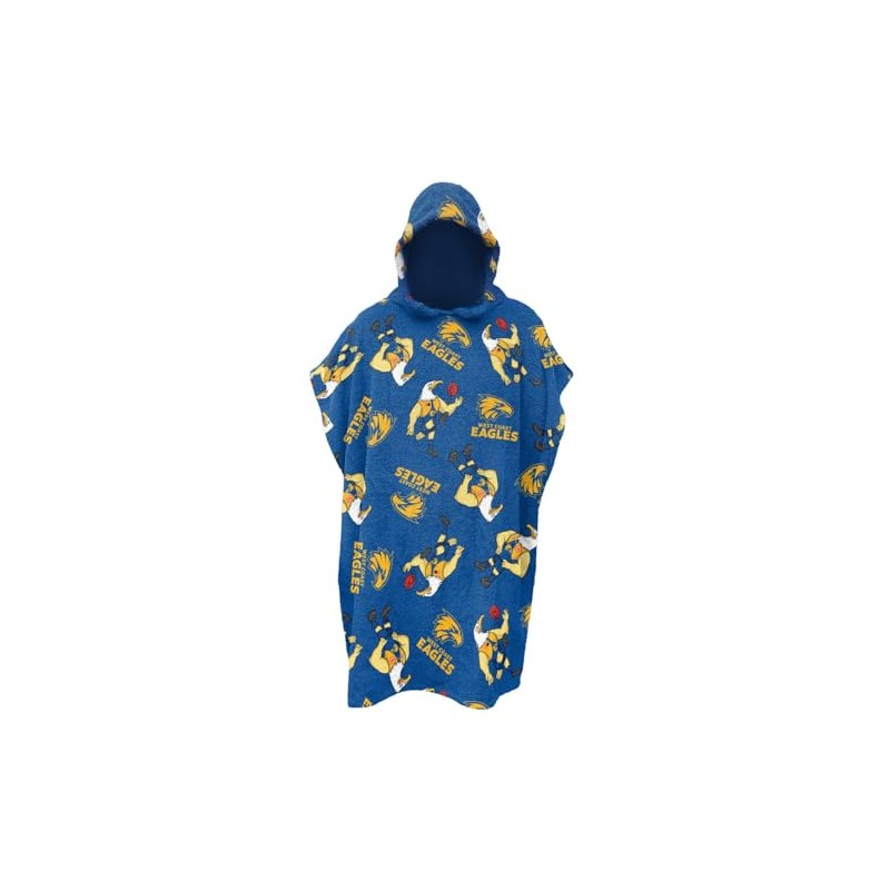 AFL West Coast Eagles Junior Youths Kids Hooded Beach Towel, Royal Blue Gold, 80 x 80cm