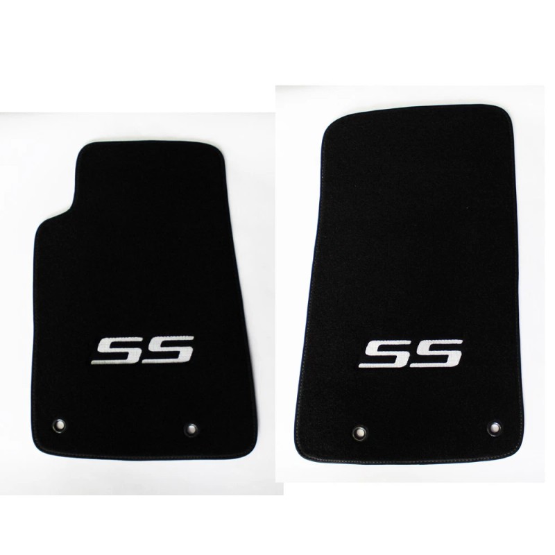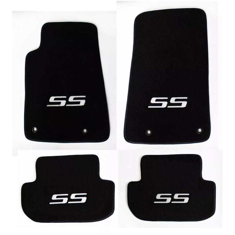 AFM NEW BLACK Floor Mats 2010-2015 Camaro Embroidered SS Logo in Silver on All 4 mat