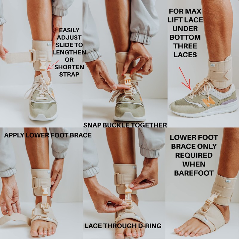 The DOSH Brace Features a New and Improved Upgraded Secure Buckle Closure that is designed to keep your foot in place all day. No longer deal with flimsy hook-and loop fasteners that lose strength quickly and constantly need to be replaced. Also new is the attached adjustable strap, which allows you to customize the brace to provide you with as much or as little tension as desired. It is designed to be able to provide a maximum and secure upward lift to your foot when walking to help restore a more natural gait. It can also be worn as an AFO night time brace to maintain foot in a neutral position for those who have drop foot/foot drop or are experiencing Plantar Fasciitis or Achilles Tendonitis.
