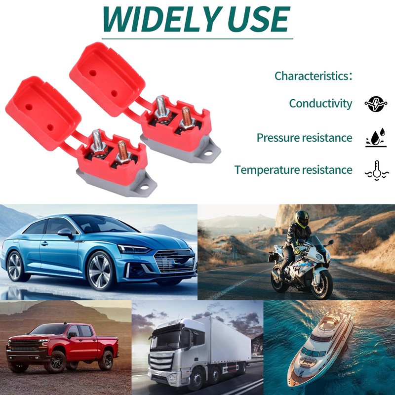 • Red protective cover prevents shorts/corrosion, 10-32 stud terminals, rustproof housing protects internal breaker.