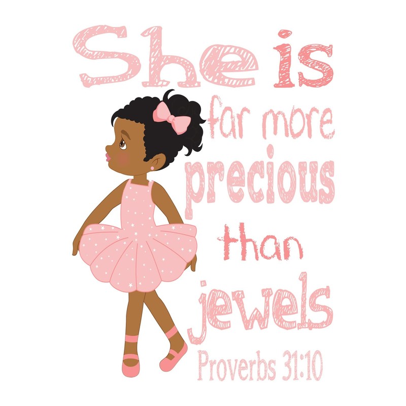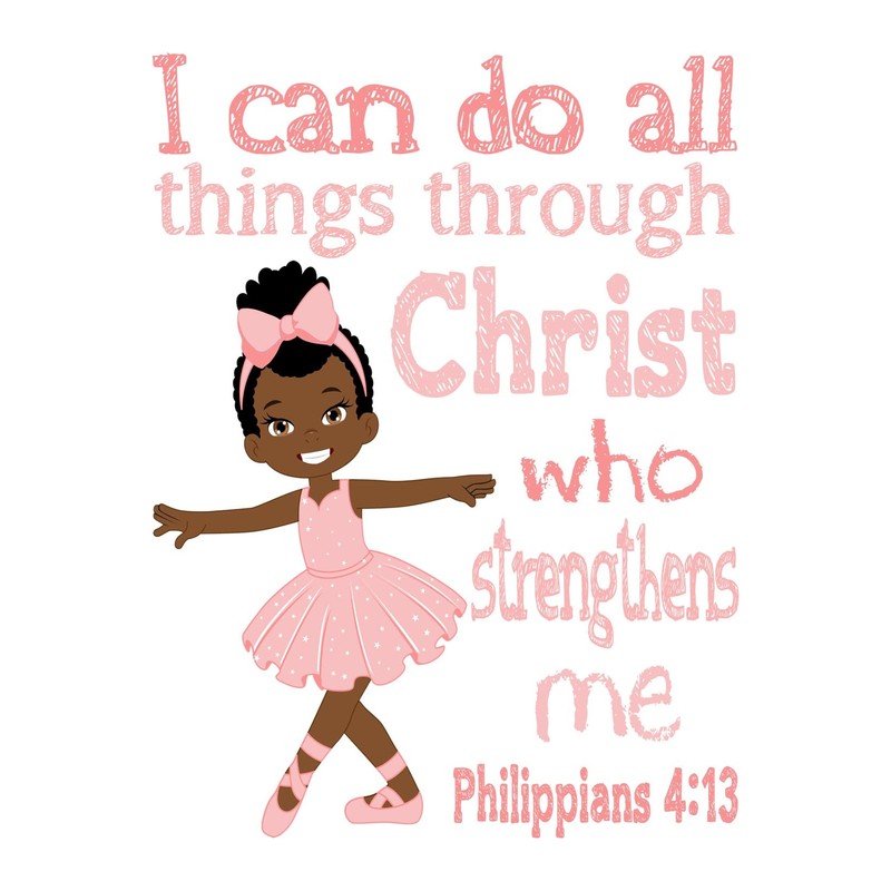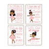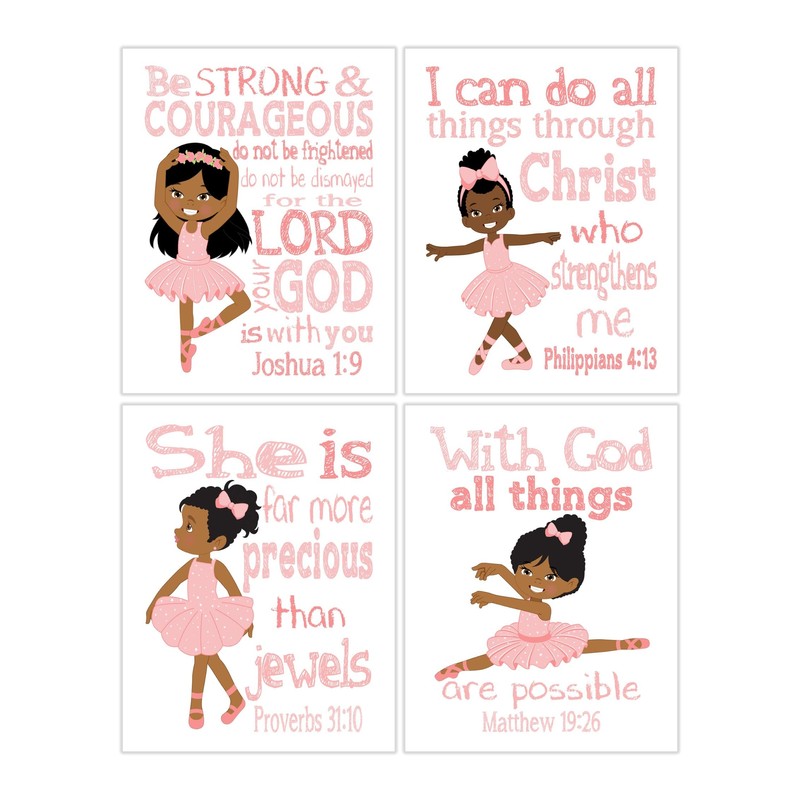 African American Ballerina Christian Nursery Decor Set of 4 Unframed Prints with Bible Verses in Pinkish Coral
