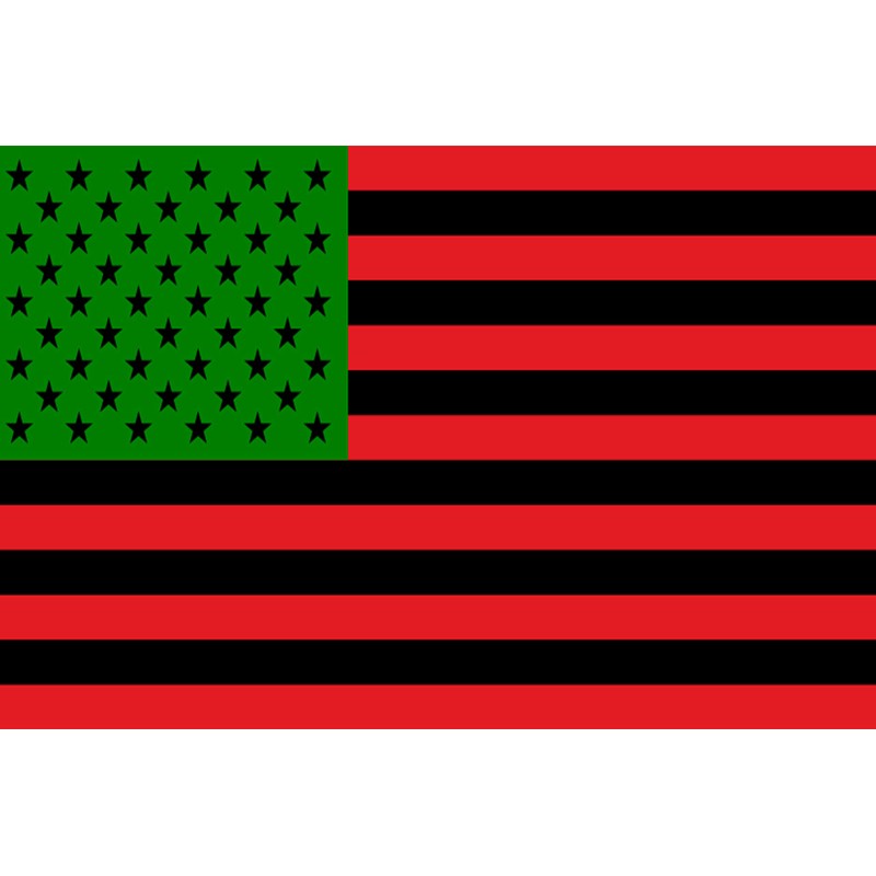 - AFRICAN AMERICAN FLAG STICKER: Choose your size. The colors represent black for people, green for glory, and red for blood. The red, black and green flag seen flying at BLM protests is known by various names, such as the African American Flag, Pan African Flag, Black Heritage Flag or the alternate Black American Flag.