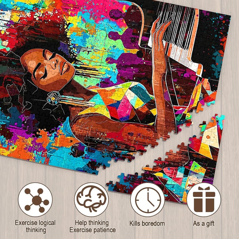 African American Jigsaw Puzzles for Adults 500 Pieces Black Women Jigsaw Puzzles African Women Wooden Puzzle Musical Performance Playing Piano Puzzle Fun Family Game Educational Intellectual