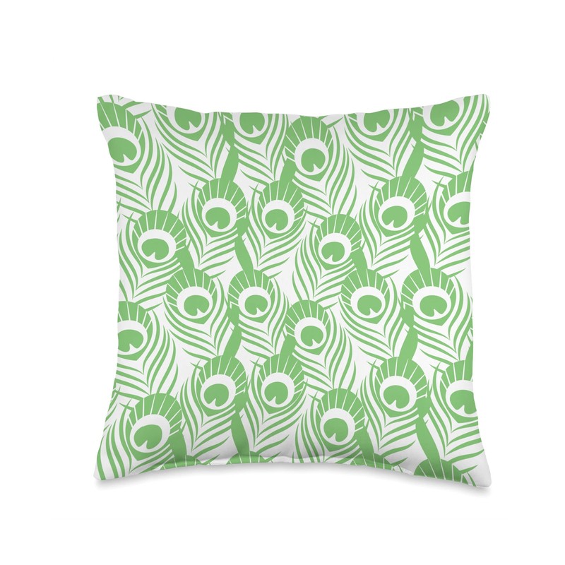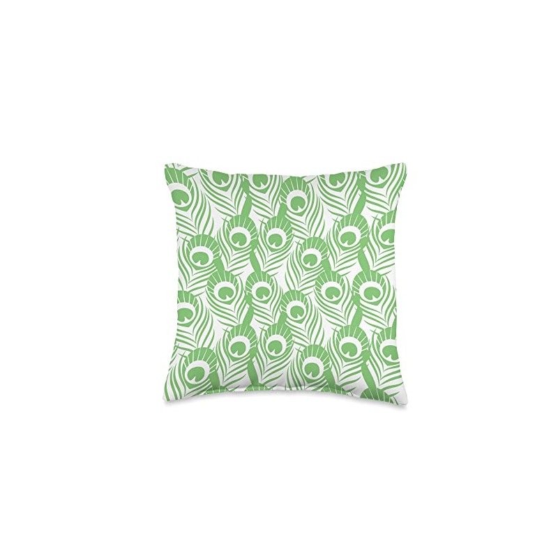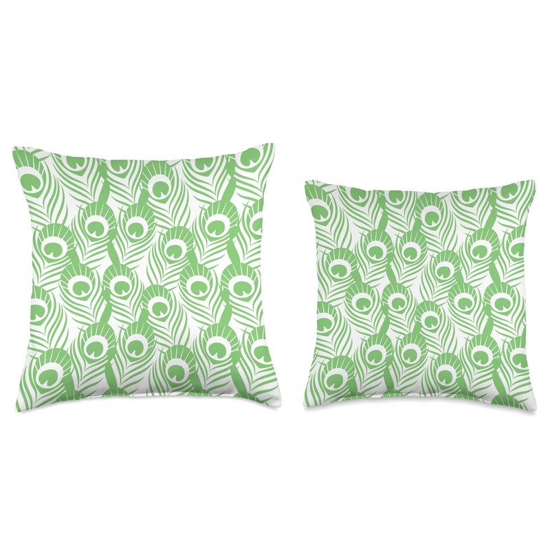 African Animal Prints Supply Co. Cute Green Pastel Peacock Print Pattern Design on White Throw Pillow, 16x16, Multicolor
