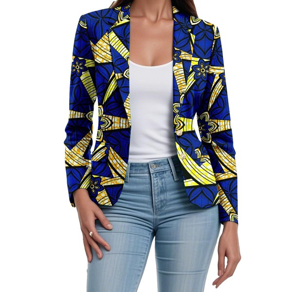 African Coat for Women Dashiki Blazer Kente Print Jacket Clothes Ankara Attire Notched Lapel Formal Top v49 X-Large