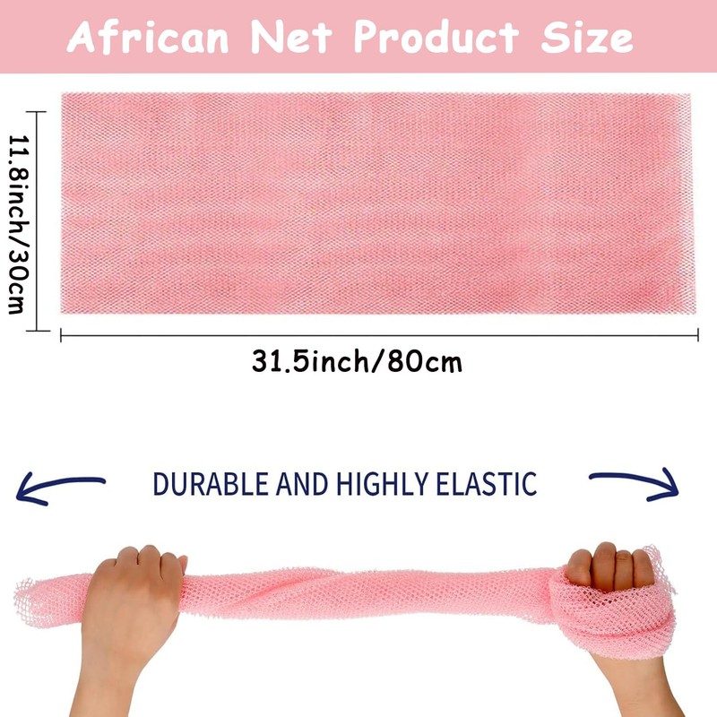 - Effective Cleaning African Mesh: African exfoliating net scrubbing mesh is slightly rough, which can easily remove dead skin, dirt, oil and unclog pores. Use with soap or body wash to enjoy b a different bathing and cleaning experience. Suitable for women and men of most ages.