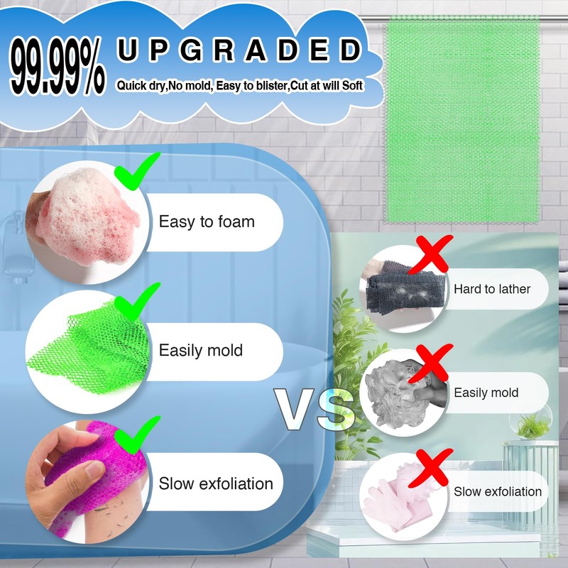 - 【EXCEPTIONAL ELASTICITY & STRETCH】Measuring approximately 11.8 inches (30 cm) in width and 31.4 inches (80 cm) in length, the sponge offers impressive elasticity and stretch, allowing you to easily reach all areas of your body, including hard-to-clean spots like your back, hands, and feet.