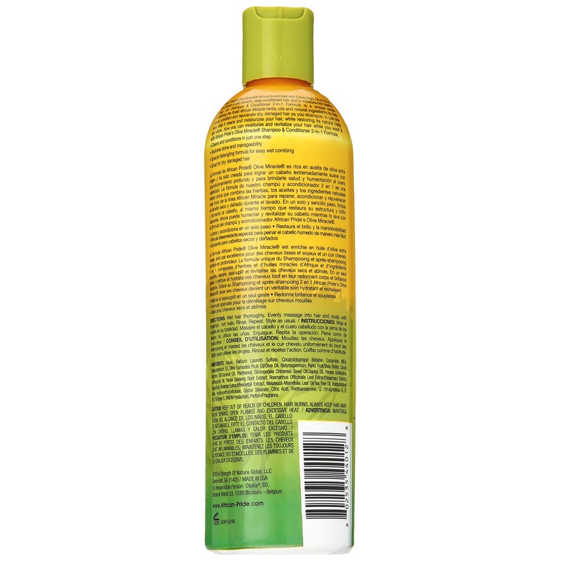 African Pride Olive Miracle 2-in-1 Shampoo and Conditioner, 12 Ounce