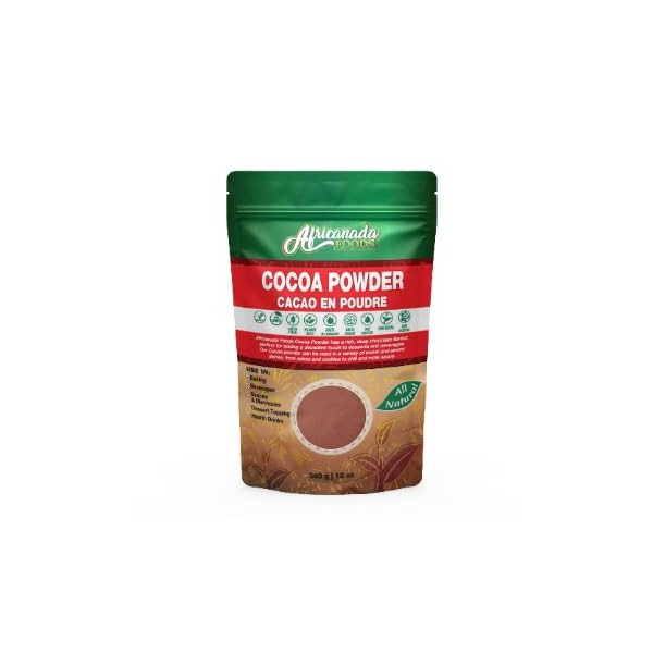 Africanada Foods All Natural cacao Powder | cocoa | Use for Baking, Beverages, Sauces and Marinades, Dessert Toppings, Health Drinks | 340g