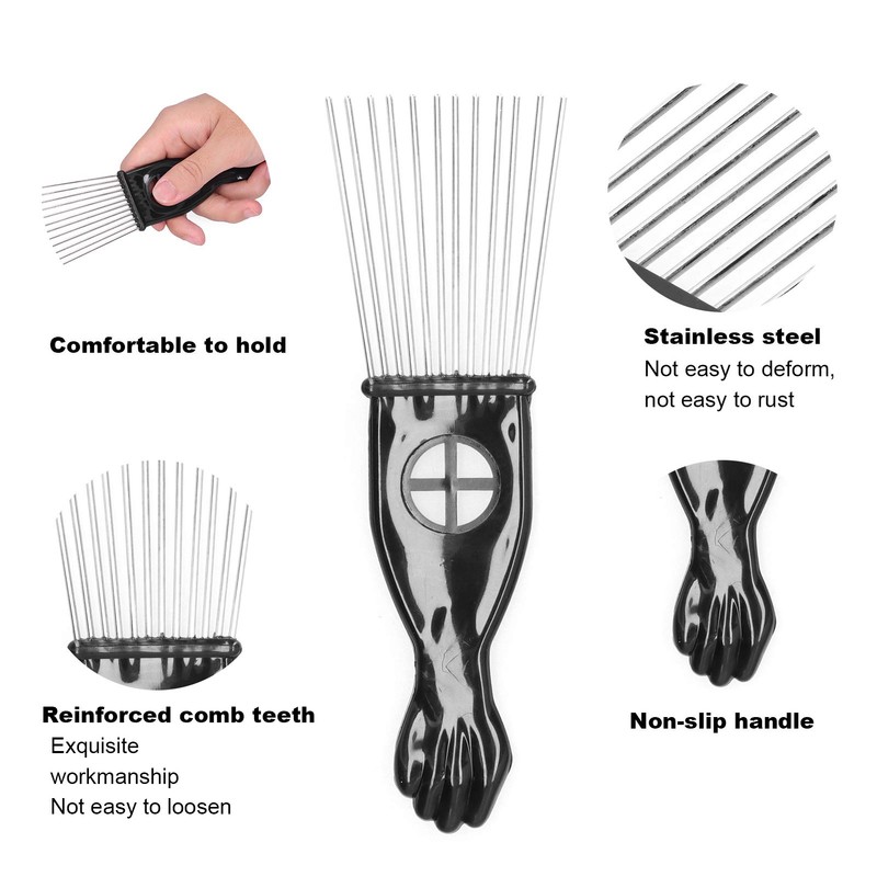 - [GENTLE AND Our Hair Pick Combs are designed with stainless steel comb teeth that are smooth and gentle on the scalp, ensuring a comfortable styling experience. The steel are resistant to deformation, breakage, and rust, ensuring long-lasting use.