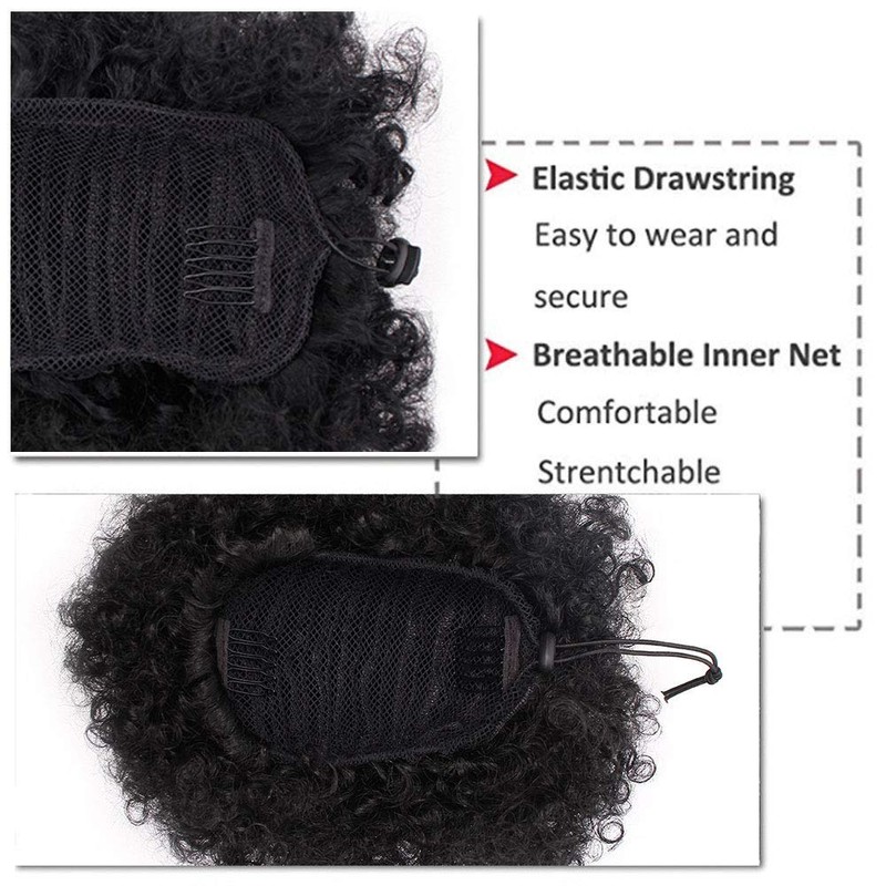 - Comes Curly and Ready to Wear: Just put your own hair into a buns Drawstring Ponytail, Attach the extension piece with drawstring and combs and go!