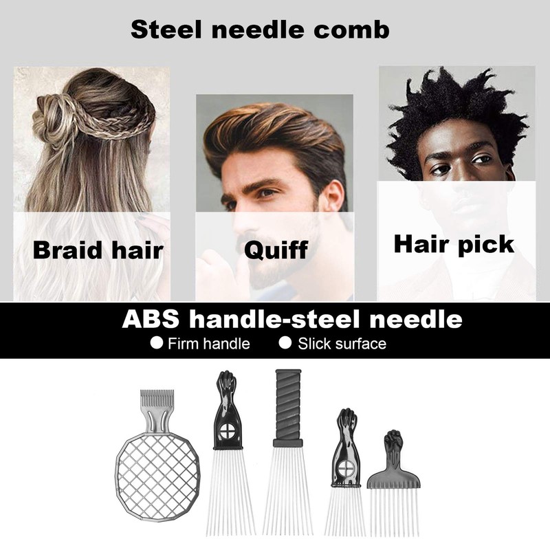 Afro Twist Comb Set, 5 Pieces Stainless Steel Afro Pick Hair Pimples Detangle Wig Braid Hair Styling Comb Pimples, Afro Pick Combs for African American Hair Styling