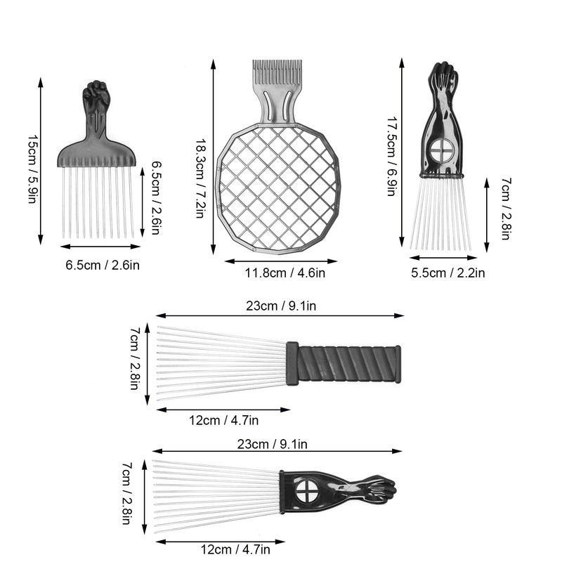 - You will receive: you will receive 4 different sizes of pimple comb and a rotating comb that can meet your different needs. It is very important to understand your hair texture. For soft hair textures or people who have difficulty getting their desire.