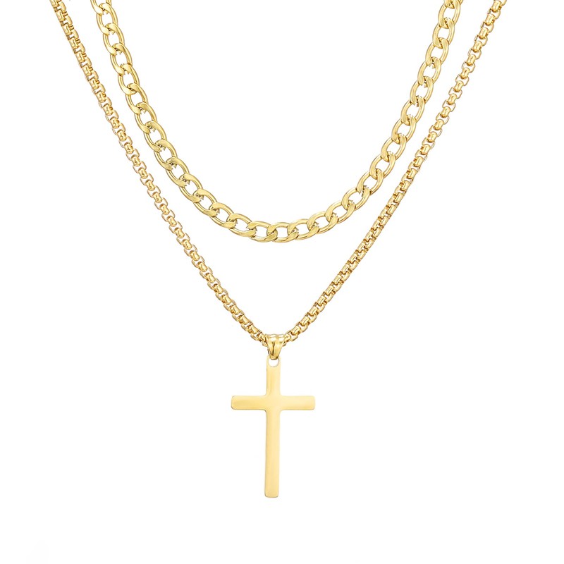 - Features: layered cross necklace for men consists of two chains, one is a Cuban necklace and the other is a cross chain with box chain. Wearing alone or stacking can give you a unique temperament