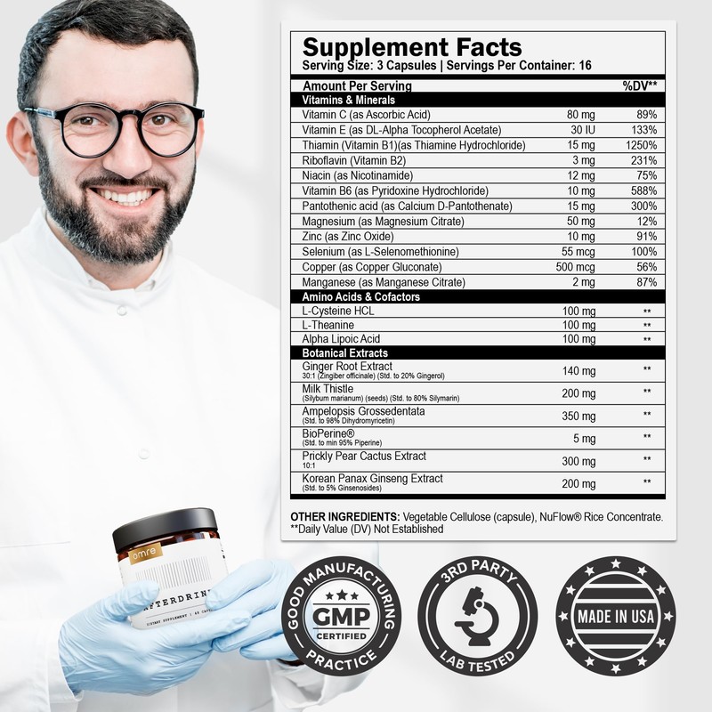 - WHAT MAKES AFTERDRINK DIFFERENT? - We use the highest quality ingredients and all of our nutrients are plant-based, in the best formats available, and at optimal doses. We refuse to use cheap “proprietary blends” and our extracts are standardized to contain the highest amount of active ingredients. In other words, we don’t cut any corners.