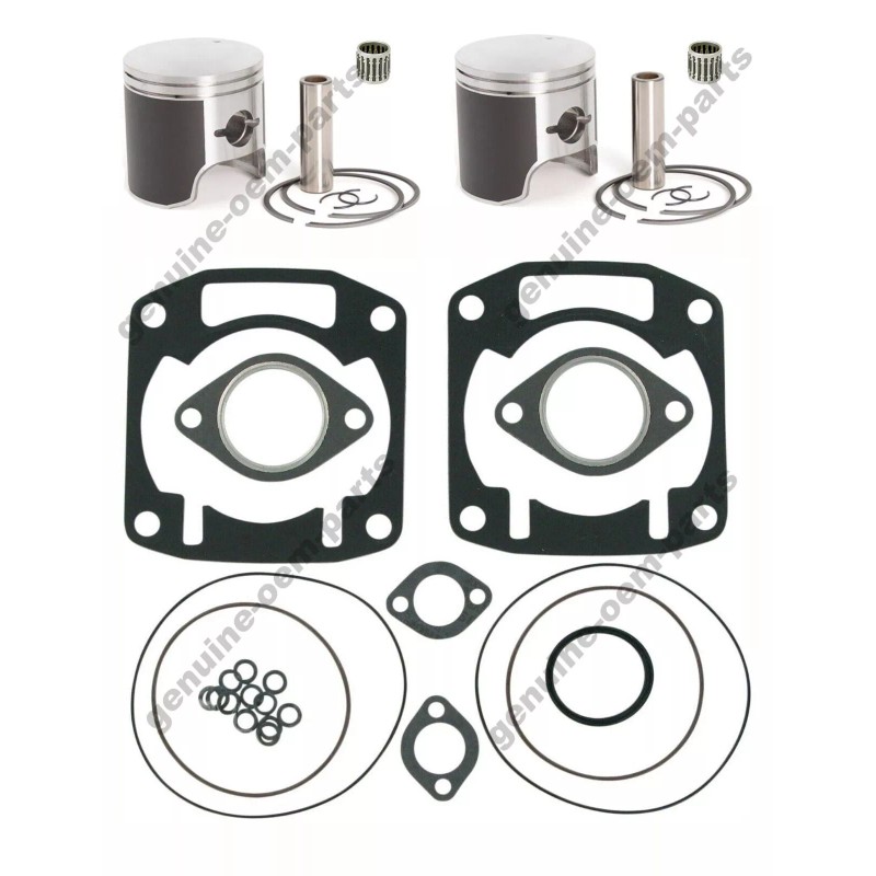 - Includes (2) pistons, rings, wrist pins, circlips, wrist pin bearings, and a top end gasket kit.