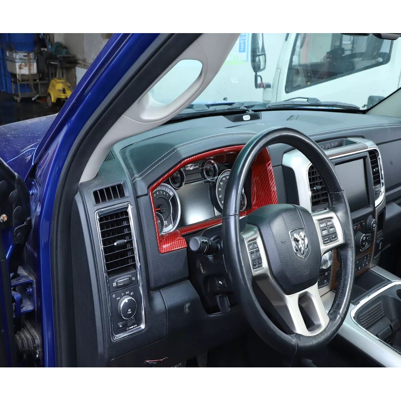 Aftermarket Branded Console Dashboard Panel Trim Cover For Dodge Ram 1500 2010-2017 Red Carbon Fiber