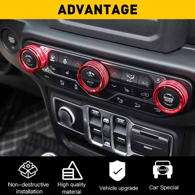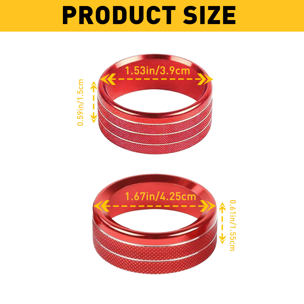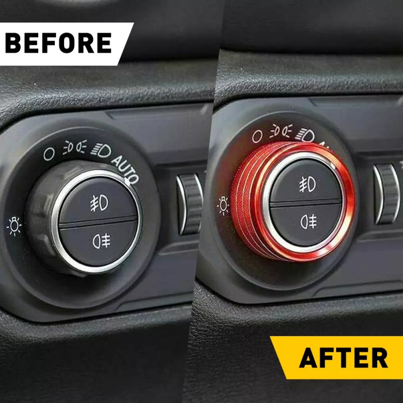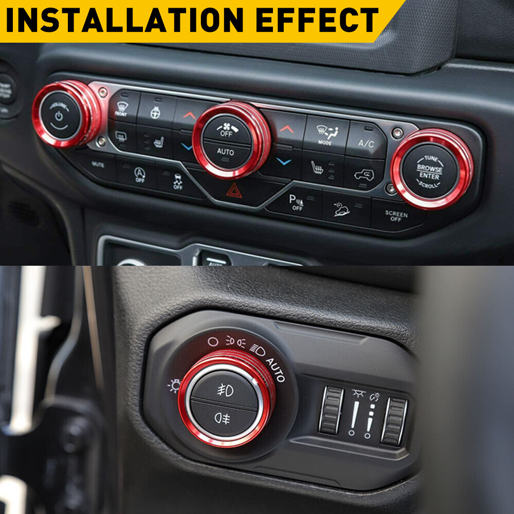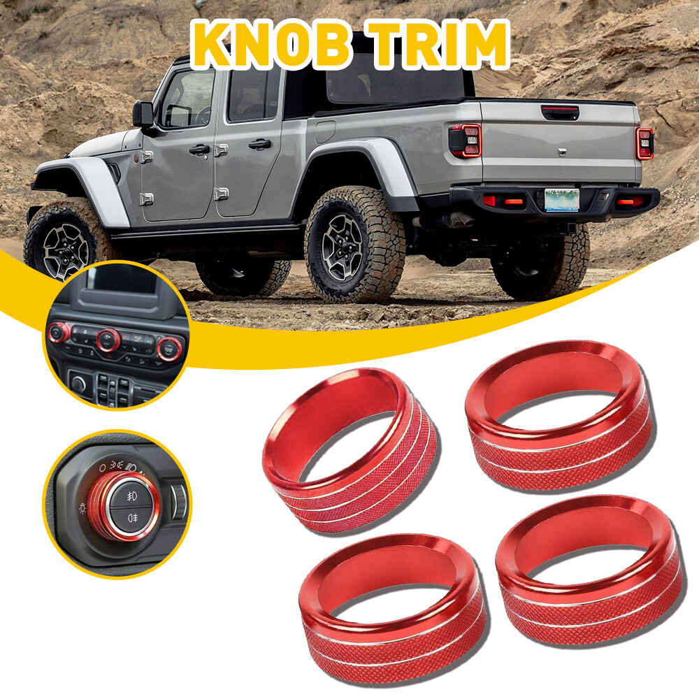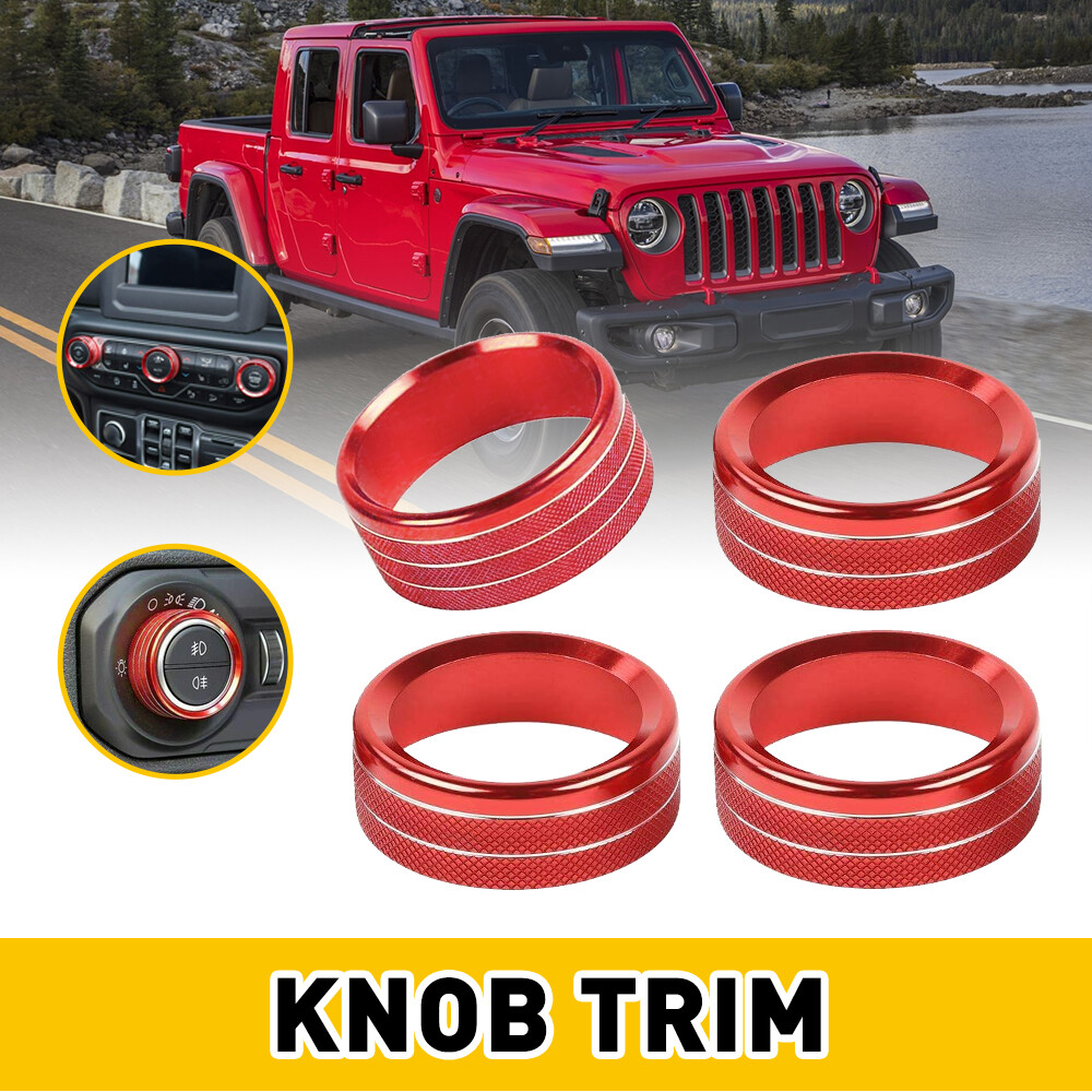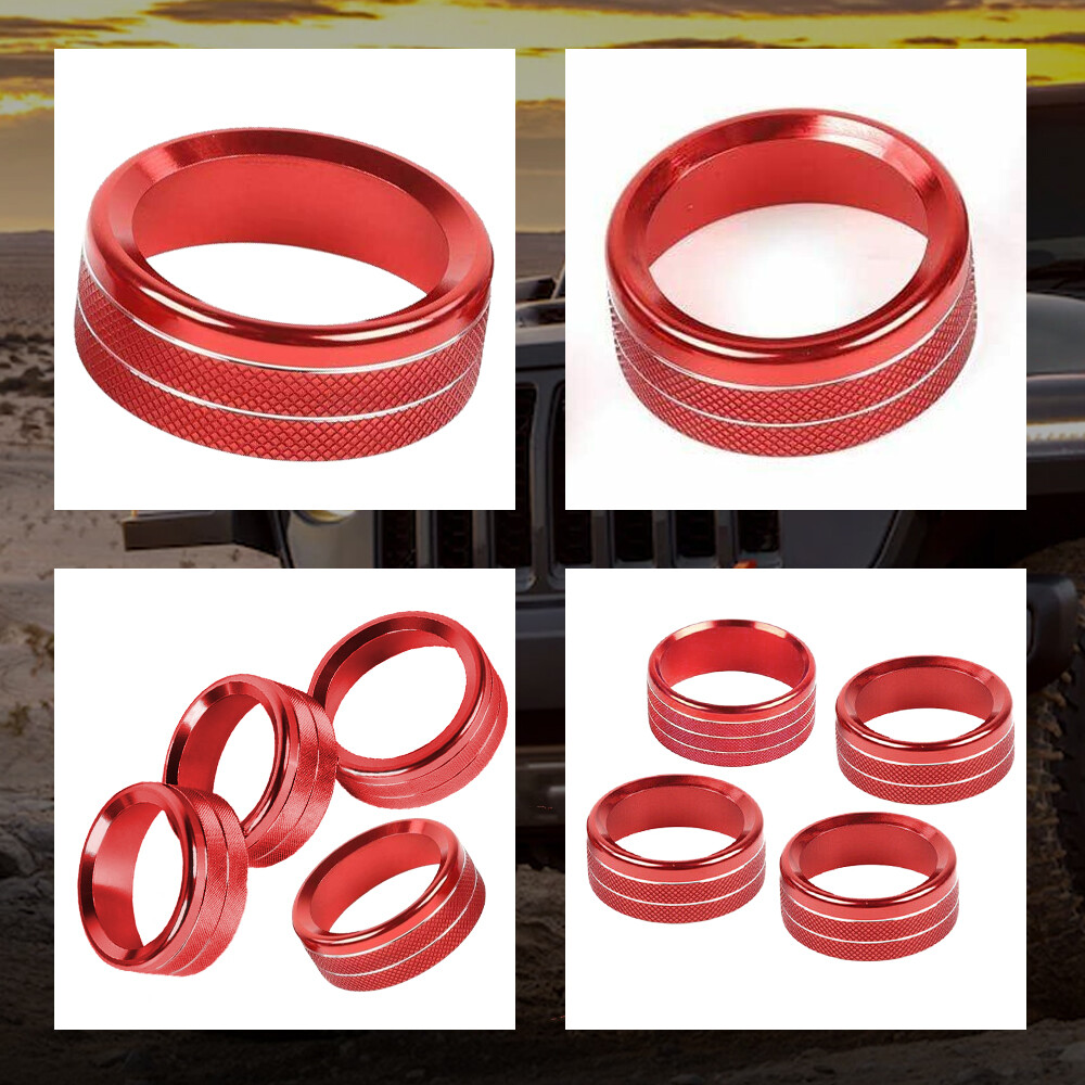 Red Air Conditioner/Headlight Knob Switch Trim Ring for Jeep Wrangler JL 18+