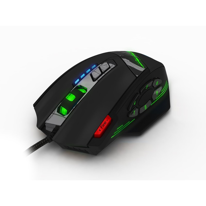 - Con almohadillas de teflón, suaves y durables en la base y cuerpo contorneado para mejor control de juego. Características de gama alta, incluyendo: 12 botones, luz pulsante en 6 modos de color, y 12 botones laterales programables MMO.