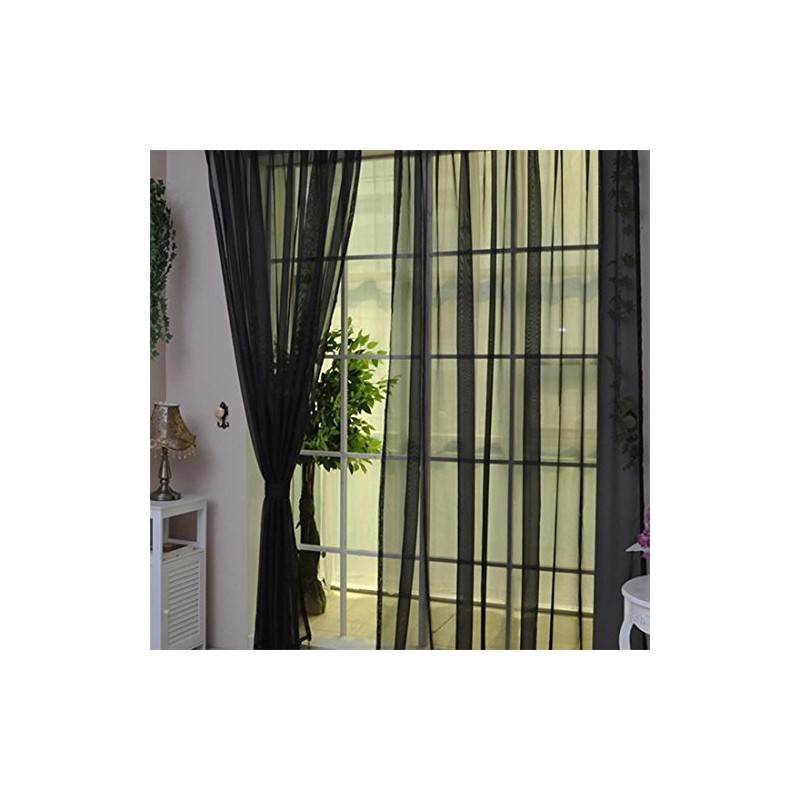 AFUT Pure Color Voile Window Net Voile Curtain Panels For Living Room,Office;100CM X 200CM(Black)