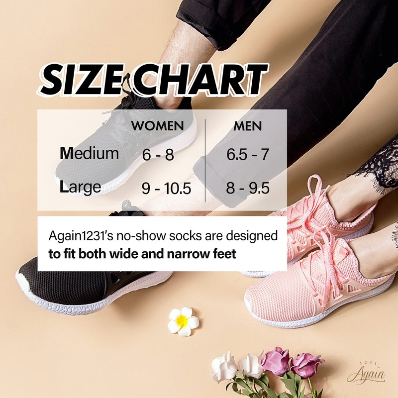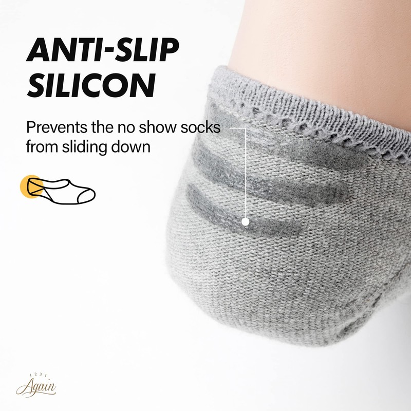 Again 1231 Light Non-Slip No Show Socks for Men and Women [3 Pairs, Large, grey]