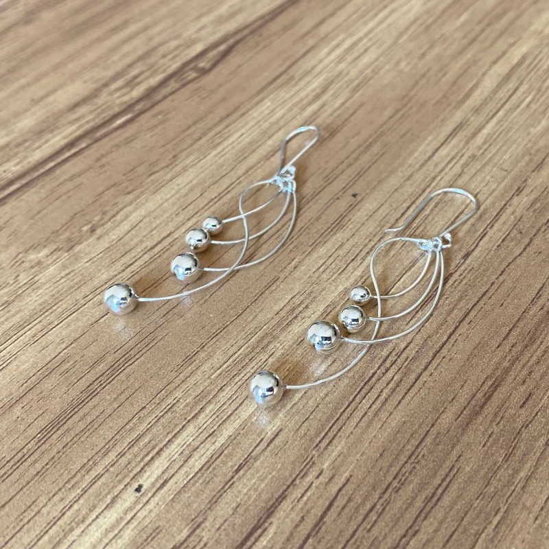 Agálea | Aretes largos de Plata .925 con bolitas colgantes para mujer diseño elegante