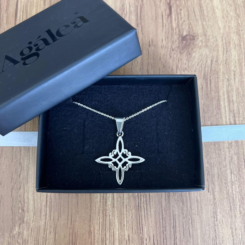 Agalea | Collar con dije nudo de bruja y cadena tipo ancla de 45 cm, ambos de plata ley 925, para mujer.