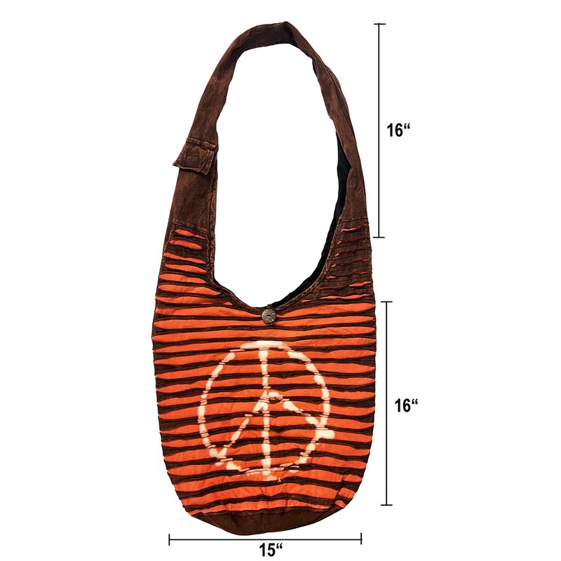 - Approximate Size: 15" Width X 16" Height; Strap drop = 16 inches; Bags closes by zipper and a button loop outside.