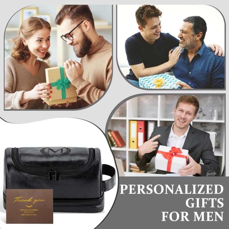 - 🎁【Personalized Initials – A Gift He’ll Treasure】Are you still looking for a surprise for him? High quality mens toiletry bag carefully designed by our design team, personalize it with his initials wrapped in a wheat wreath. Unique wheat ears symbolizes harvest, prosperity, lucky, new life and unlimited creativity, expressing the best wishes for him. Personalized gifts for men, husband, dad, son, boyfriend and friends on birthdays, Christmas, Valentines, Fathers Day and anniversary.