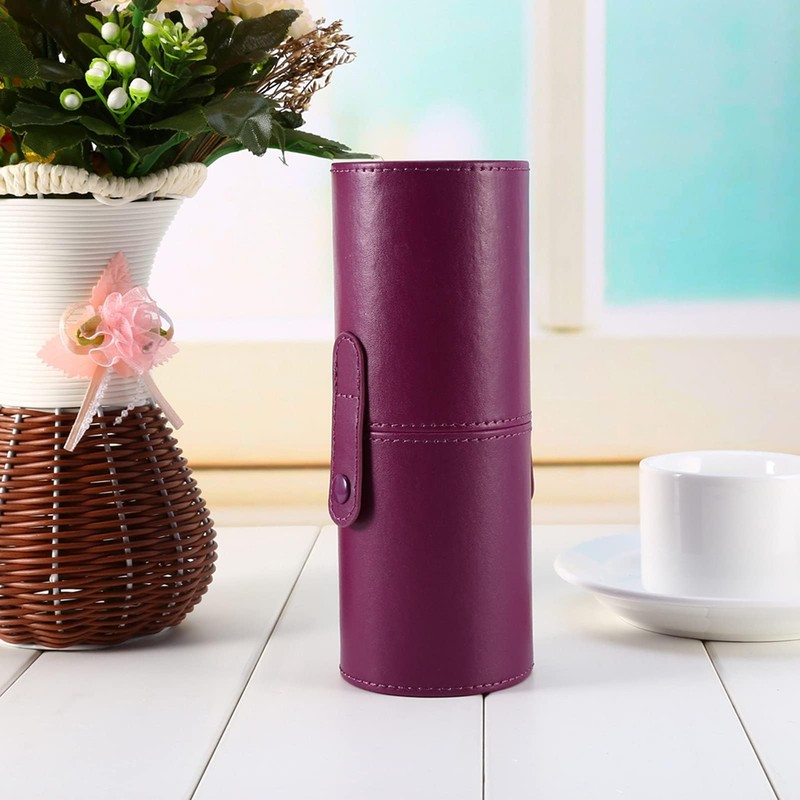 Agatige Travel Makeup Brush Holder, PU Leather Makeup Brushes Case Bag Cup with Lid Cosmetic Storage Organizer for Women and Girls