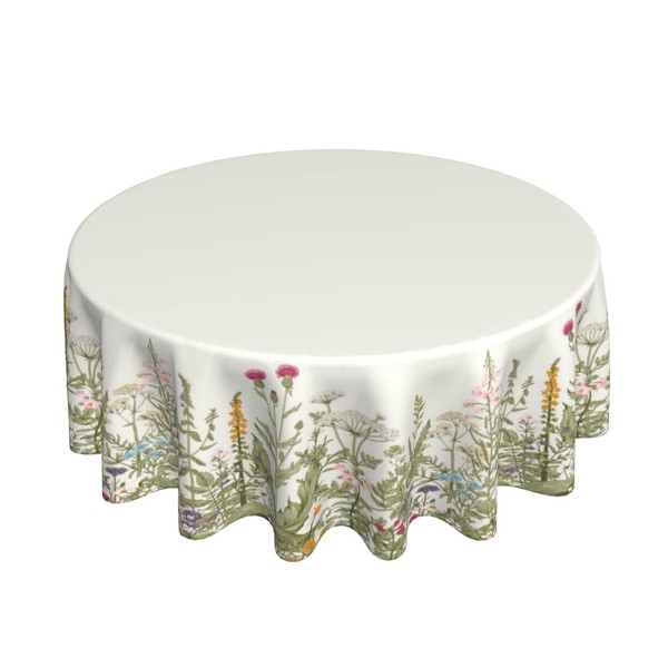 - 【Spring Tablecloth Design】 70in round design, wildflowers patterns, exquisite and pretty printing, special for you, this spring flowers tablecloth not only gives your table a new stylish look but also protects your table from scratches spills.