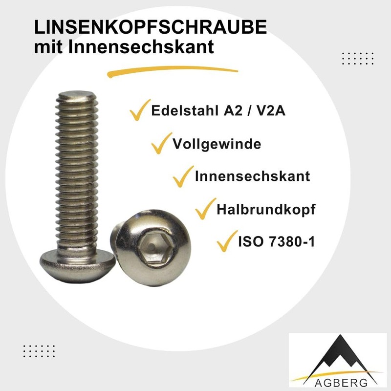 AGBERG - M6 x 6 pan head screws with hexagon socket - flat head screws [20 pieces] made of stainless steel A2 V2A, rust-proof - ISO 7380-1