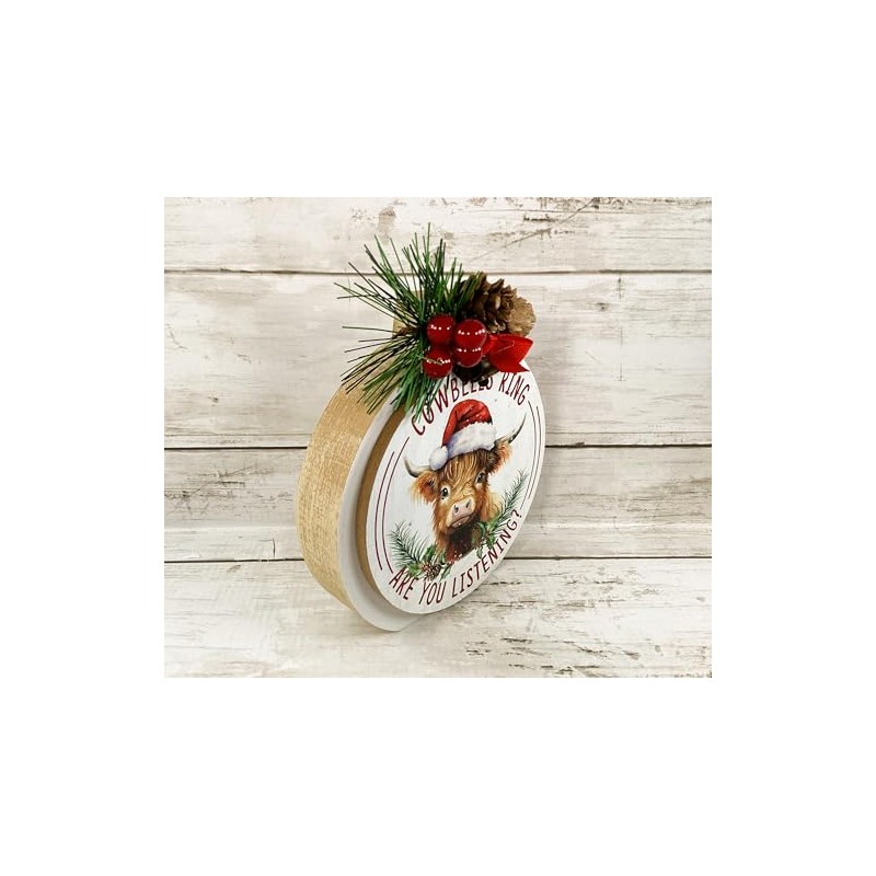 AGD Christmas Decor - Highland Cow Bells Chunky Wood Bulb Sitter