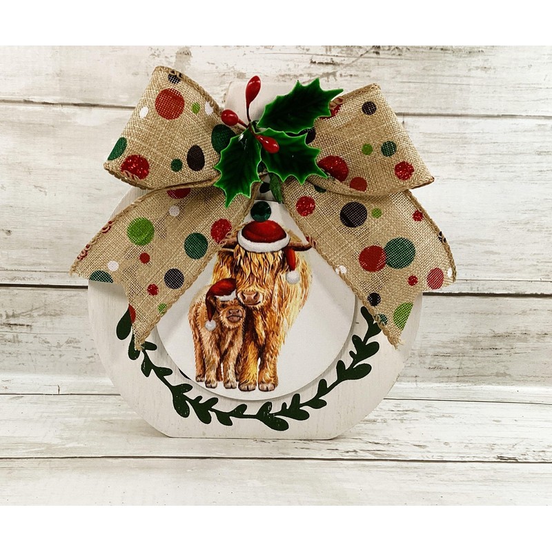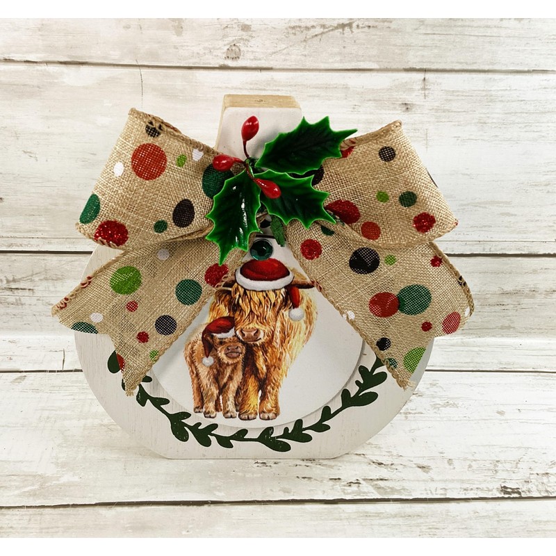 AGD Christmas Decor - Highland Cow Wood Chunky Wood Bulb Sitter