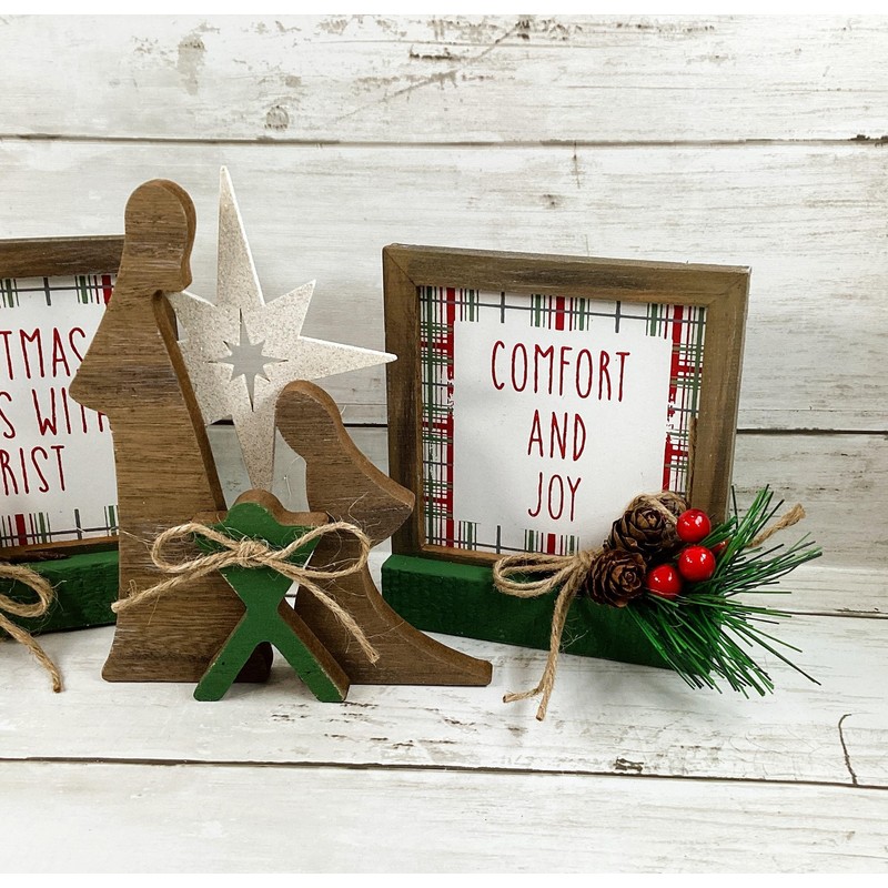 - Signs 4.5 x 4 x 1-inch approx (Each) Nativity 5.5 x 4.5 x 0.75-inch approx.
