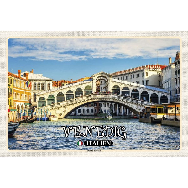 AGDeko® Tin Sign Venice Italy Rialto Bridge Size 30 x 20 cm