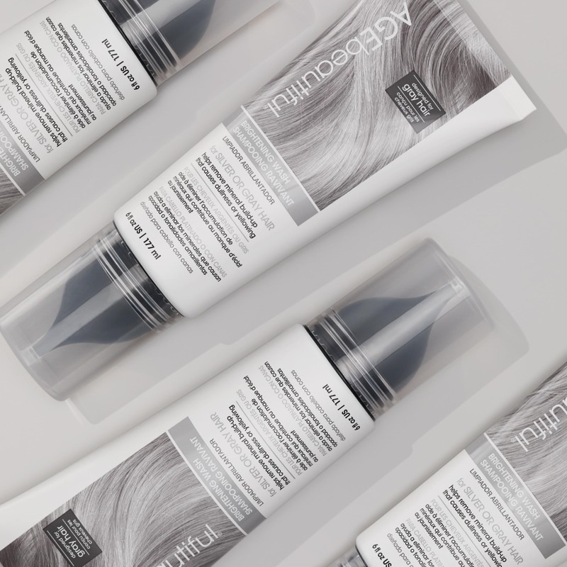 - Brightening Wash helps remove pollution and mineral build-up that discolors gray hair.