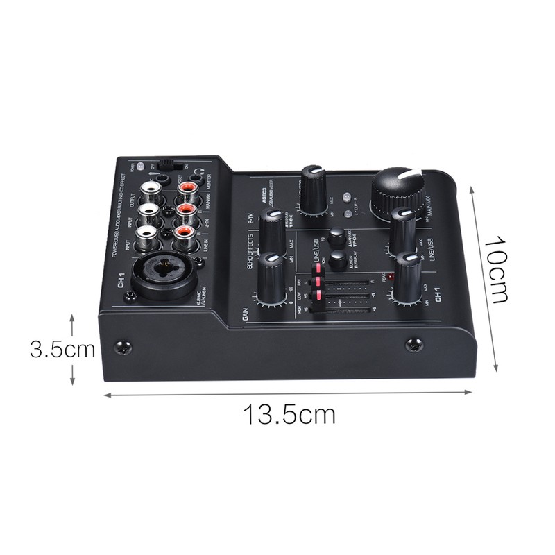 Other features: 2-band EQ(HIGH & LOW) and PAN control; Built-in echo effect; GAIN control; headphone volume control; LED indicator lights; etc.