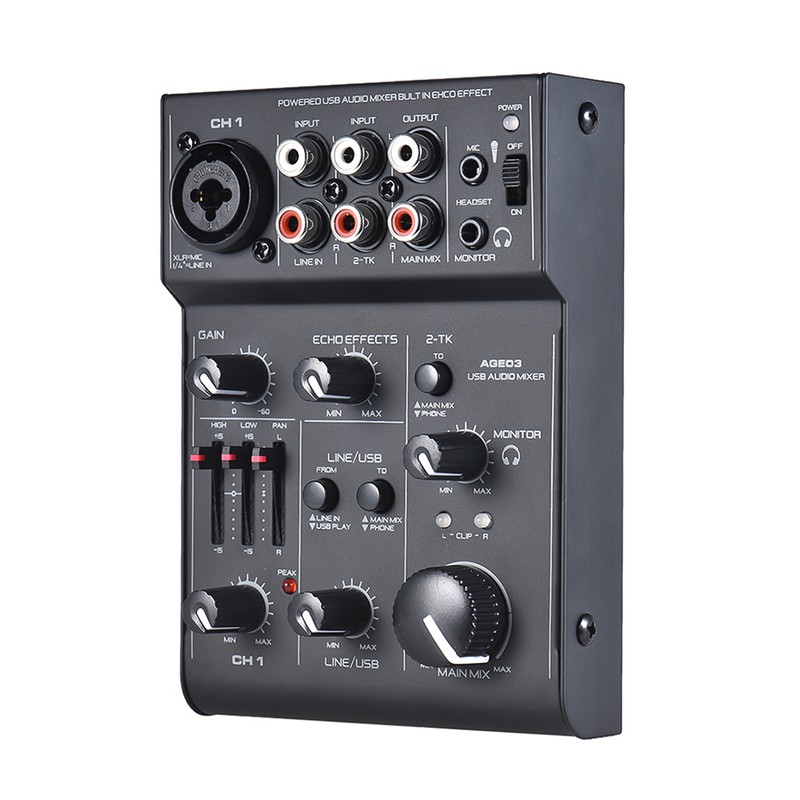 AGE03 5-Channel Mini Mic-Line Mixing Console Mixer with USB Audio Interface Built-in Echo Effect USB Powered for Recording DJ Network Live Broadcast Karaoke
