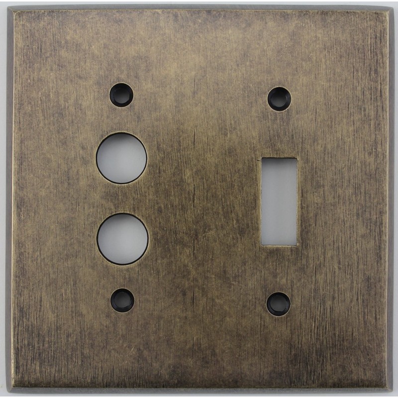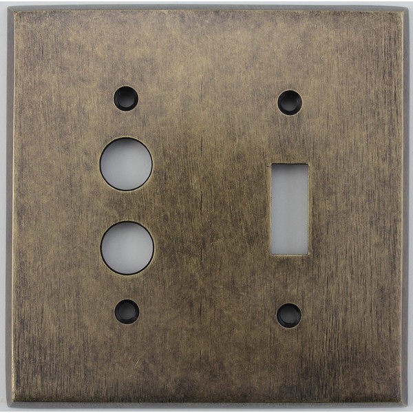 Aged Antique Brass 2 Gang Combination Switch Plate - 1 Push Button Light Switch Opening 1 Toggle Light Switch Opening